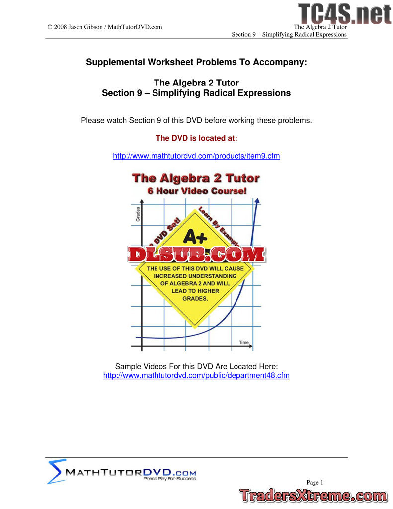 09 Algebra 2 Tutor Simplify Radical Expressions - JPG Image File