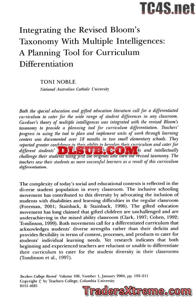 Integrating The Revised Blooms Taxonomy With Multiple Intelligences - JPG Image File