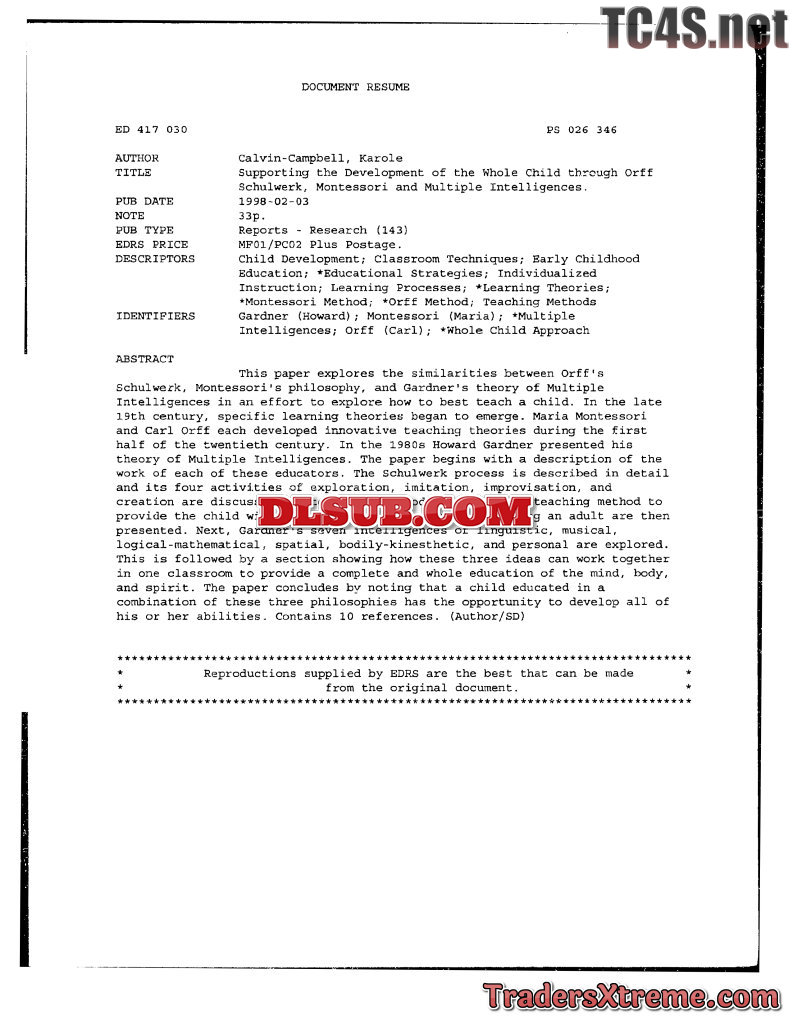 Supporting The Development Of The Whole Child Through Orff Schulwerk Montessori And Multiple Intelligences - JPG Image File