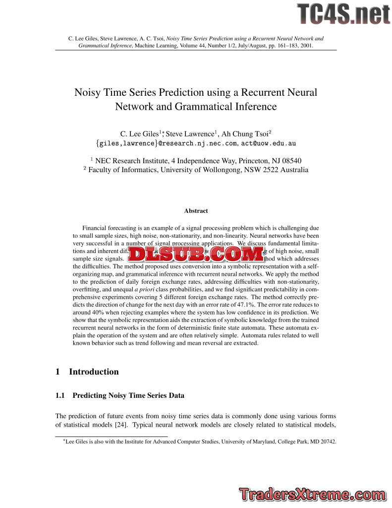 Noisy Time Series Prediction Using A Recurrent Neural Network And Grammatical Inference, C. Lee Giles, Steve Lawrence 01 - JPG Image File