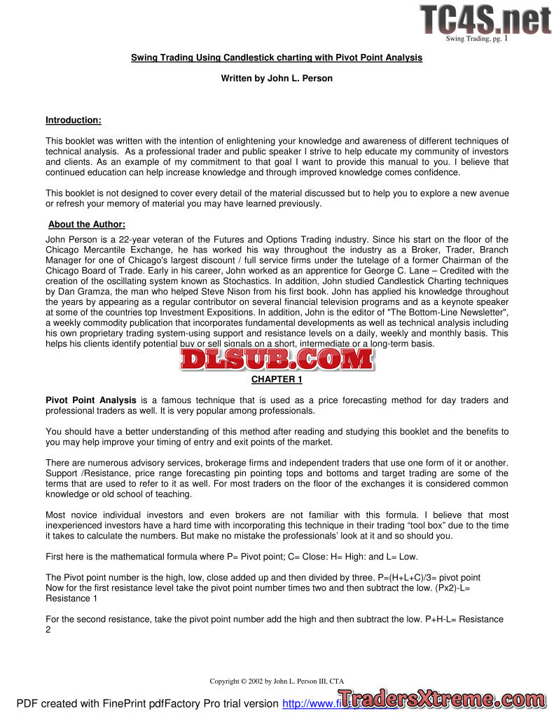 John L Person Swing Trading Using Candlestick Charting With Pivot Point - JPG Image File