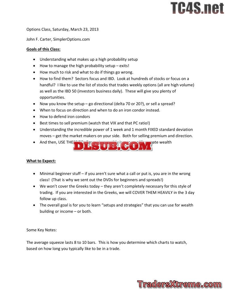 John Carter Simpleroptions Options Income Generating Blueprint Course Strategy And Theory Course Usd 497 Usd 88